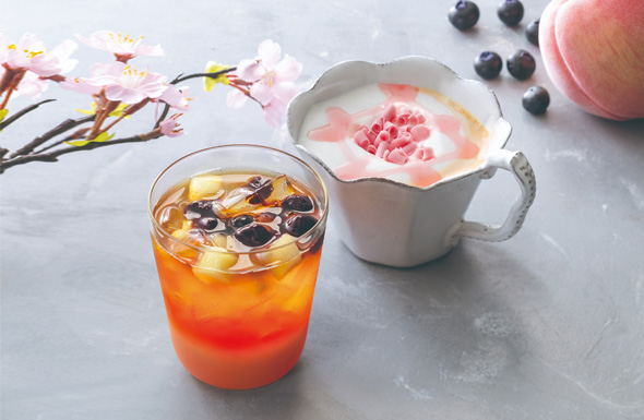 桜がふわりと香る、春らしい華やかなフルーツティーとロイヤルミルクティーをご用意しました。