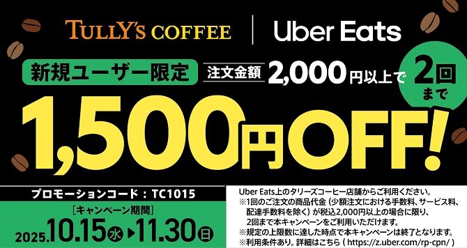 【10/15~】Uber Eats新規ユーザー限定!1,500円OFFキャンペーン!