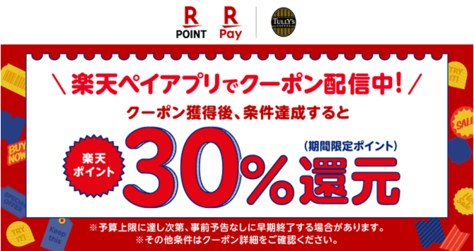 先着順、数量限定で楽天ポイントが30%還元になるお得なキャンペーンです。