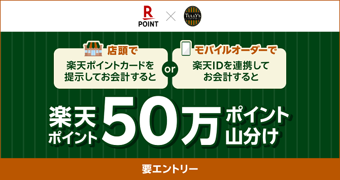 【1/9(金)~】楽天ポイントカード タリーズコーヒー50万ポイント山分けキャンペーン!
