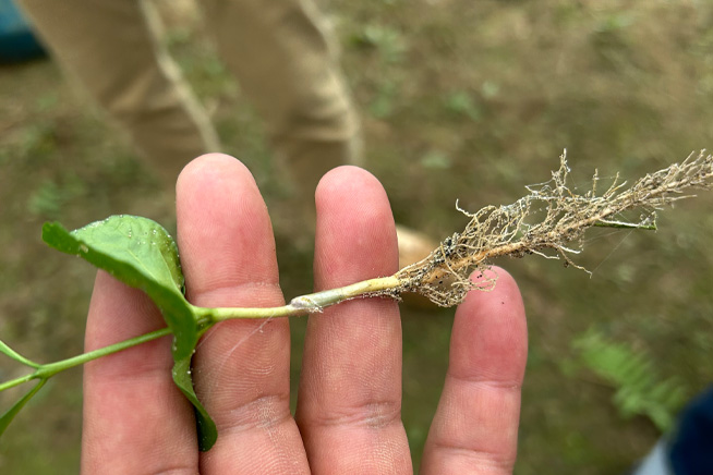 環境変化などへの耐性がある品種を土台に、残したい希少品種の苗を接ぐ