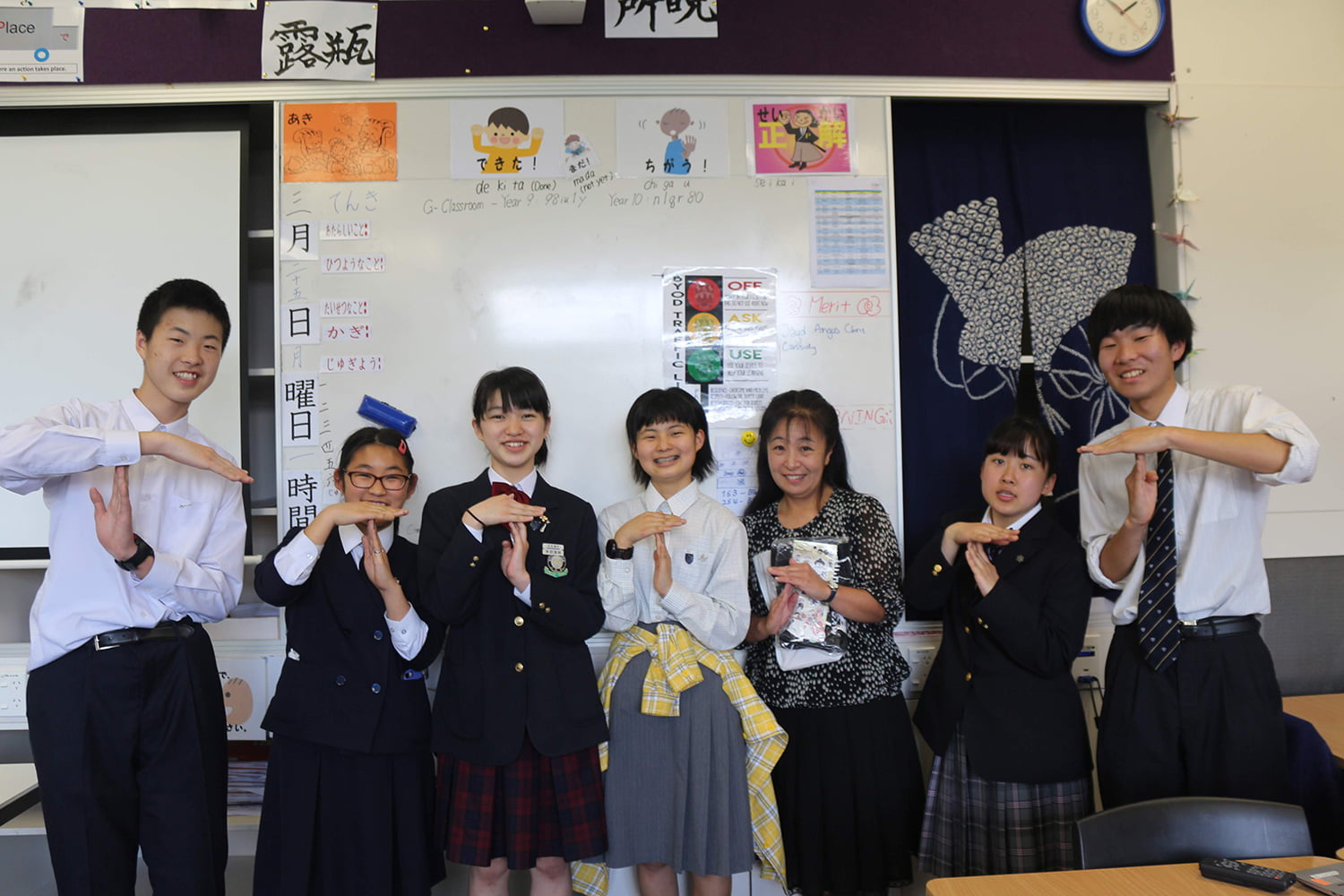 学校生活を通じて現地の高校生とも打ち解けて記念撮影