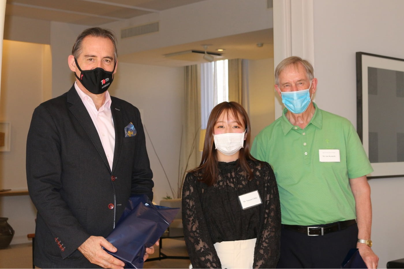 左から、ヘイミッシュ・クーパー駐日NZ大使、千葉さん、イアン・ケネディ元駐日NZ大使