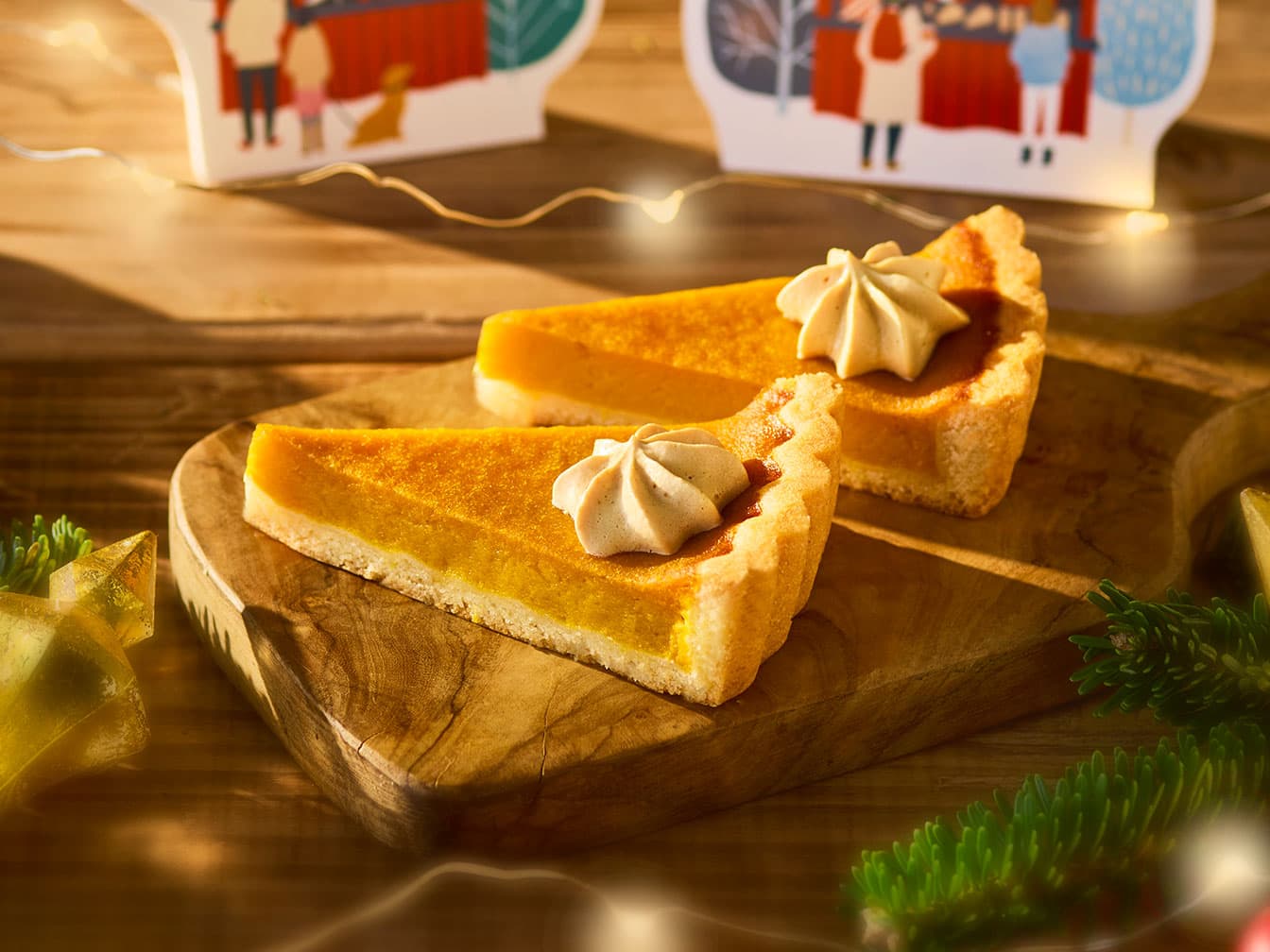 かぼちゃのコク深い甘みにビターなカラメルクリーム、さっくりタルトをあわせました。