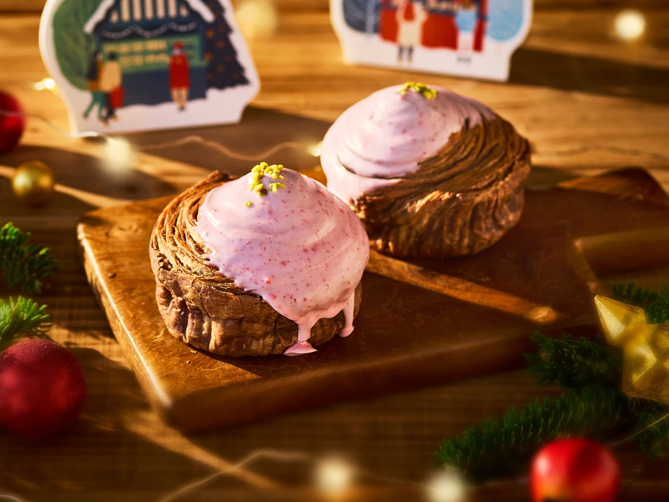 見た目も華やかな甘酸っぱいストロベリーチョコをあわせたデニッシュ。