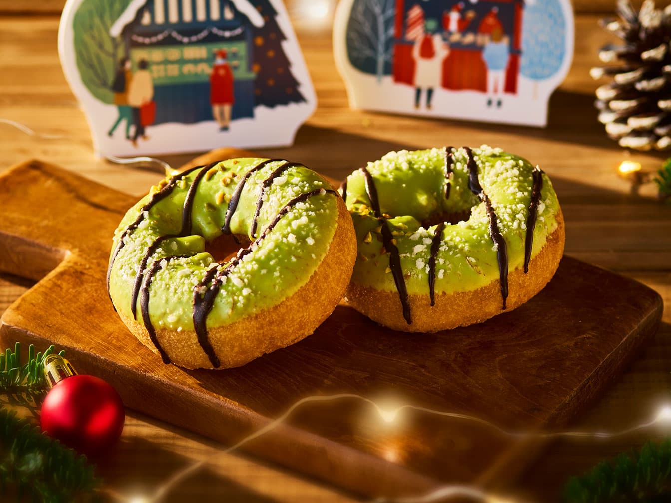 ピスタチオのナッティーな風味を楽しめる、しっとり食感のドーナツ。