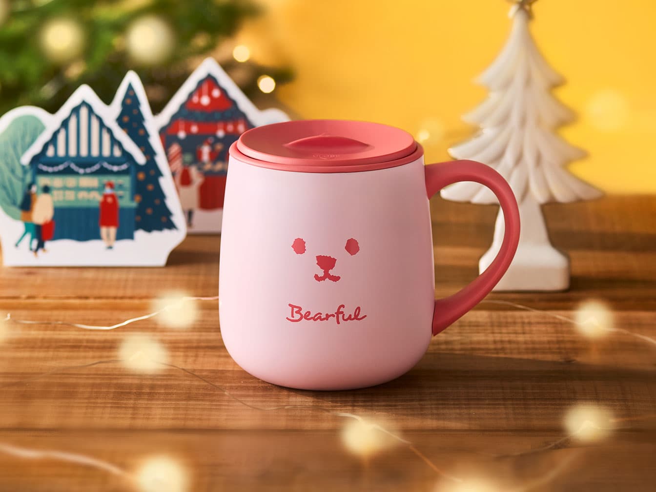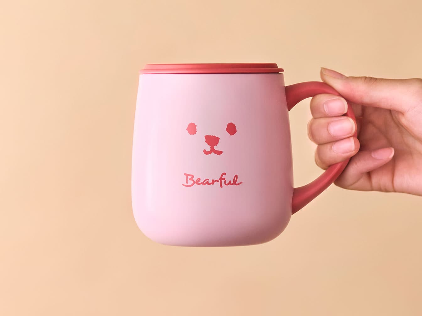 コロンとしたフォルムがかわいらしい、ベアフルのステンレスマグ。裏側にはしっぽも描かれています。