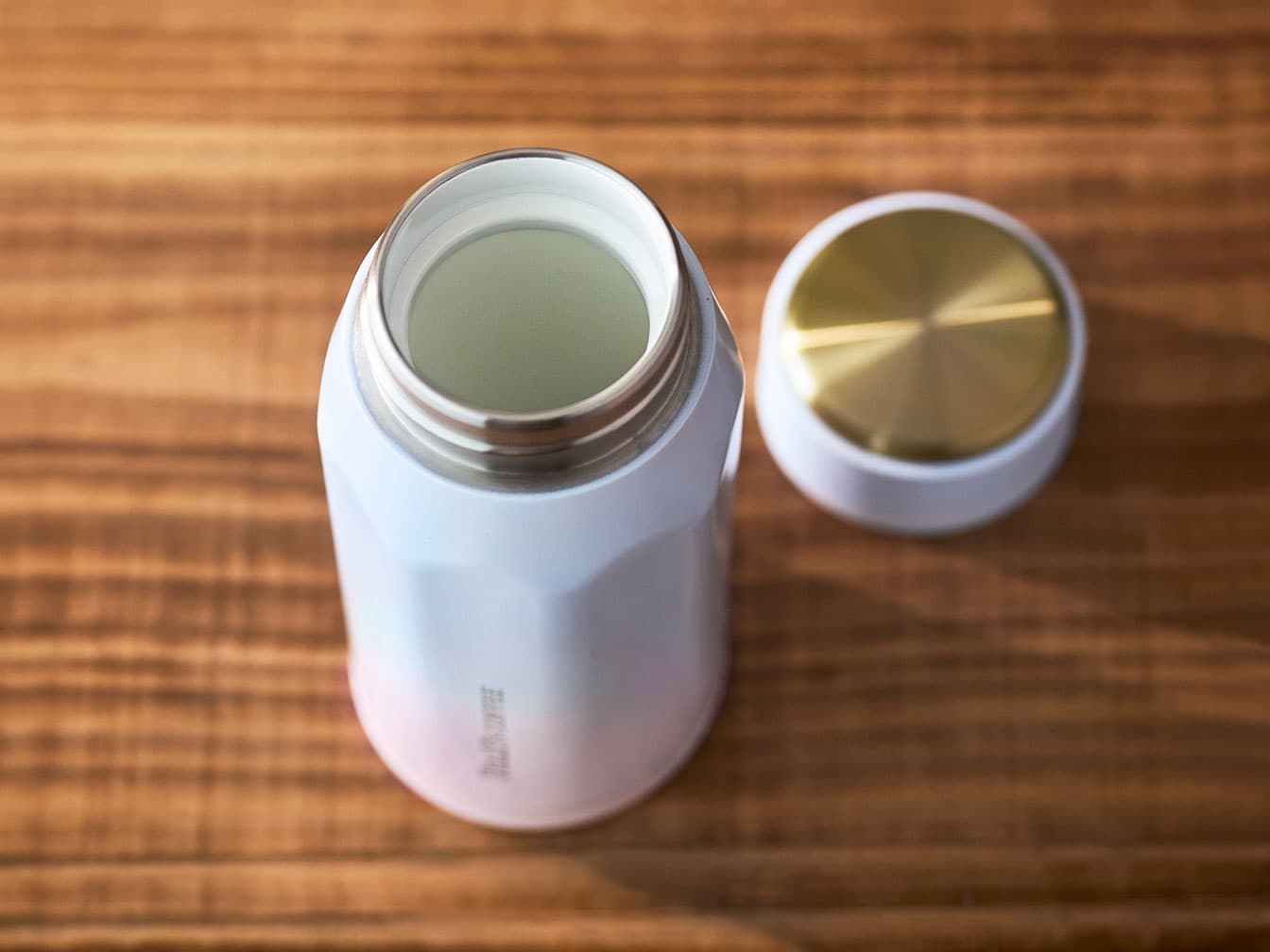 内側にセラミックコーティングを施した、保温・保冷効果のあるボトル。グラデーションカラーにパール調のラメがポイントです。