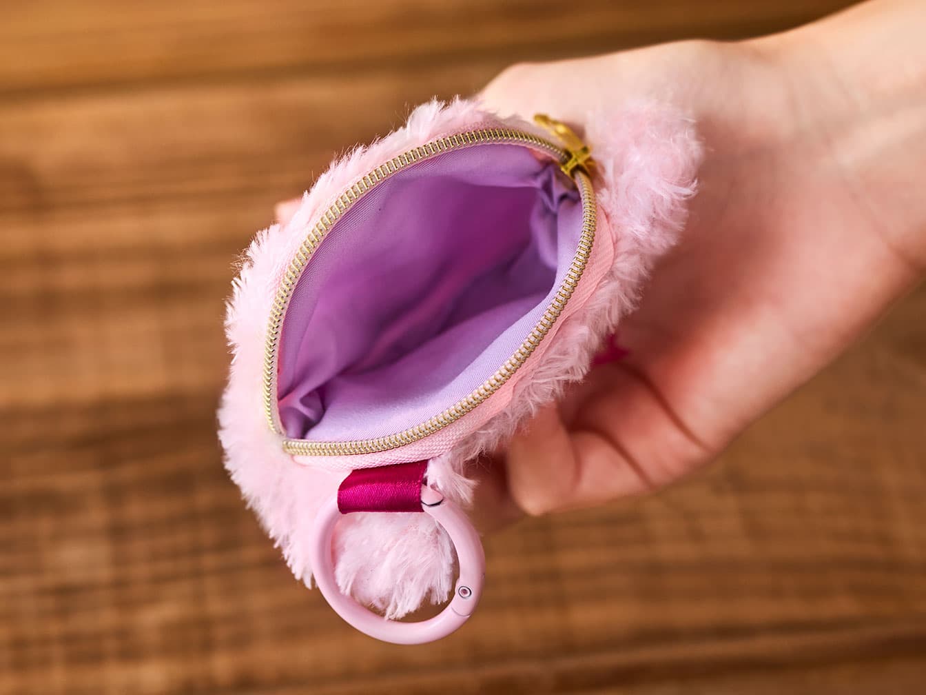 イヤホンやリップなど小物が入る、ミニミニポーチ。カラビナ付きで、カバンやネックストラップにも付けられます。
