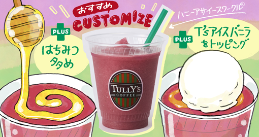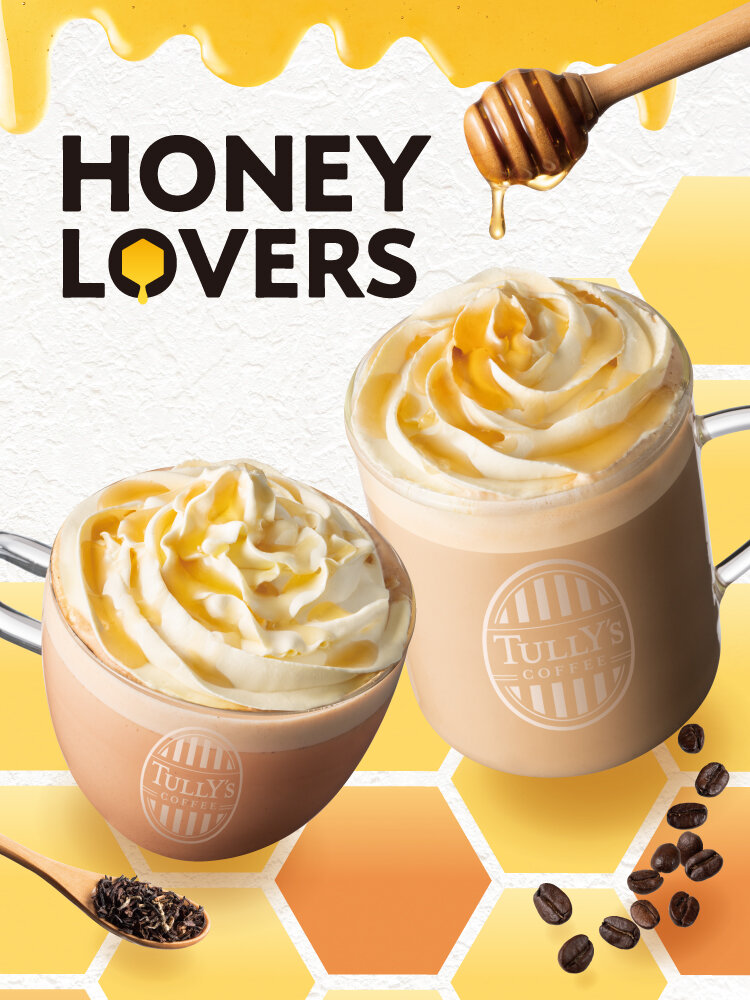 3/18(水)より発売の、「ハニーハニーミルクラテ」は、タリーズハニーを練りこんだ特製ハニーホイップが、見た目にも華やかな一杯です。芳醇なエスプレッソとコク深いミルクとともに、はちみつの甘い香りが楽しめます。