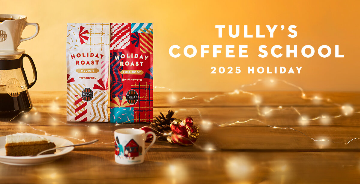 冬のイベントを彩るスイーツにぴったりな、焙煎度が異なる2種類の冬季限定ブレンド『タリーズホリデーロースト』と共に、「ホリデーミニマグ(非売品)」がおみやげに付いた【特別版】 ホリデーコーヒースクールの受付が開始しました!
