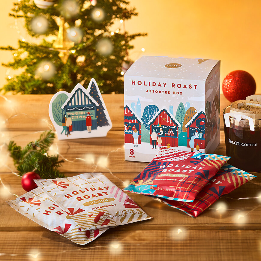 今年のホリデーテーマは「WELCOME TO TULLY'S HOLIDAY MARKET」!店頭や街路樹がキラキラと輝きだすこの季節、とびきり楽しいワクワク気分をタリーズから始めませんか。 今年初となる『タリーズドバイチョコレートラテ』は、甘くほろ苦いチョコの味わいに、香ばしいピスタチオとザクザク食感のチョコレートの食感がアクセント。『&TEA ラムレーズンロイヤルミルクティー』はラムフレーバーとシナモンがふわっと香る、冬にぴったりな大人のロイヤルミルクティーです。冷たい空気の中でもほっと温まる華やかなホリデードリンクをお届けします。